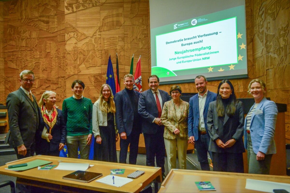 von JEF NRWAm 25. Februar 2026, wurden wir in der Staatskanzlei des Landes Nordrhein-Westfalen in Düsseldorf zum zweiten Mal mit der Auszeichnung „Europaaktive Zivilgesellschaft“ geehrt.