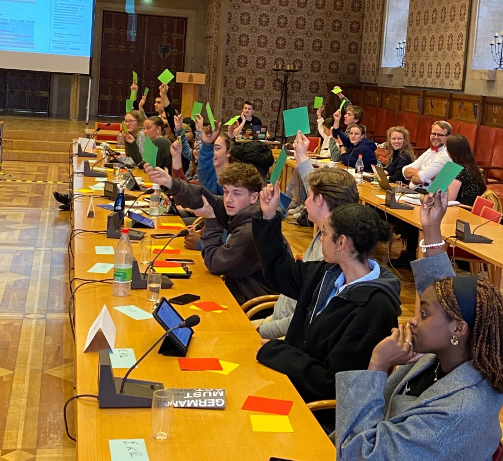 Eines der Leuchtturmprojekte der JEF unter der Kategorie Europe@School ist die Simulation des Europäischen Parlaments (SimEP). Dabei können Schüler:innen für einen Tag in die Rolle von Europaabgeordneten schlüpfen und über Entschlüsse debattieren, verhandeln und Koalitionspartner suchen. Behandelt werden aktuelle Themen in einer für Schüler:innen aufbearbeiteten Version. Auf diese Weise wird nicht nur Wissen über den Ablauf in Parlamenten live erlebt, sondern auch noch ein Einblick in aktuelle Europapolitik vermittelt.